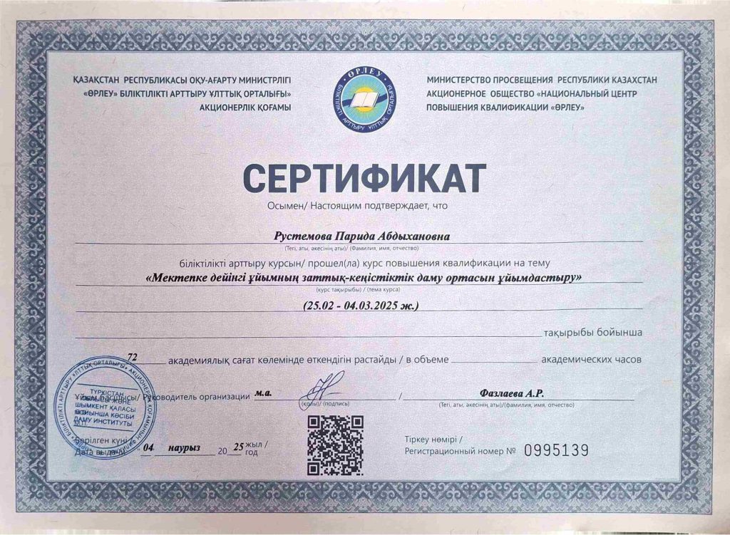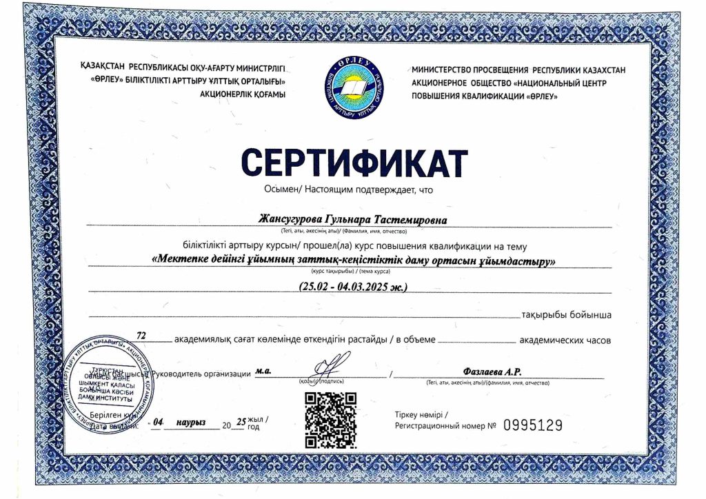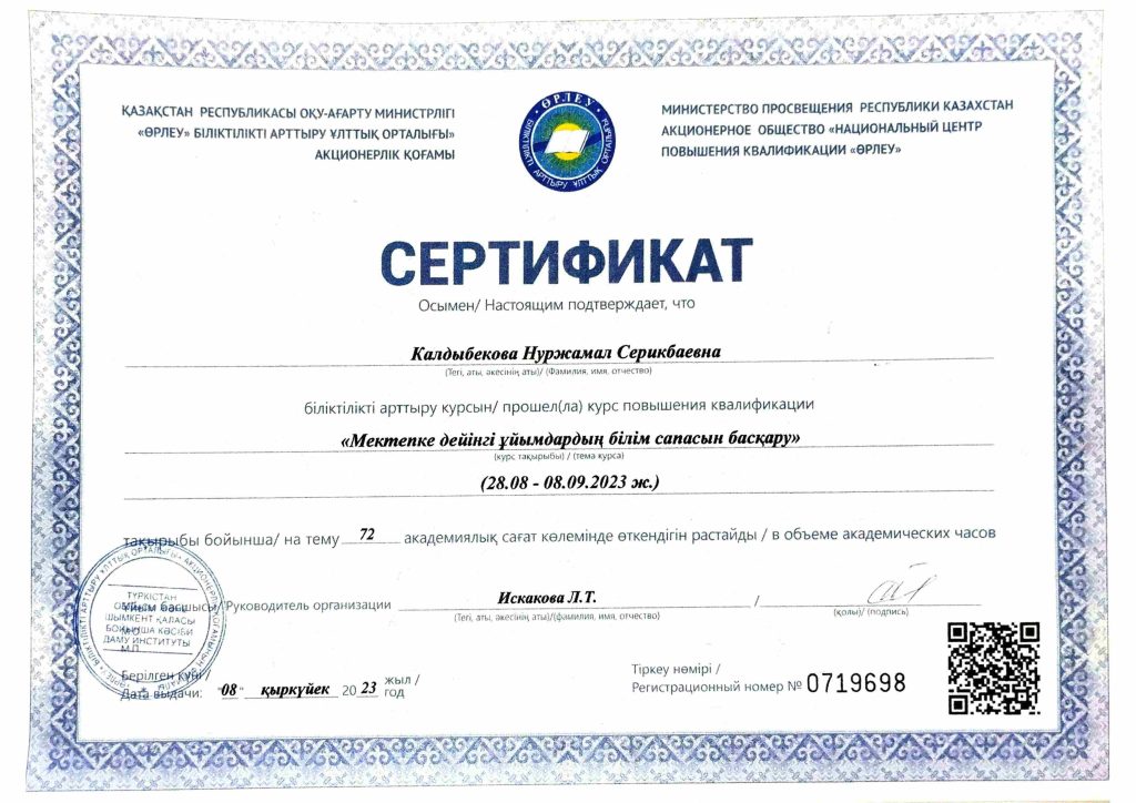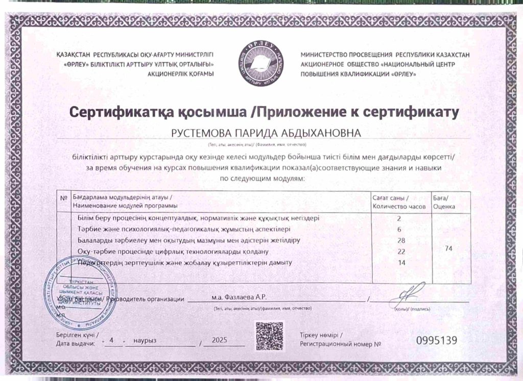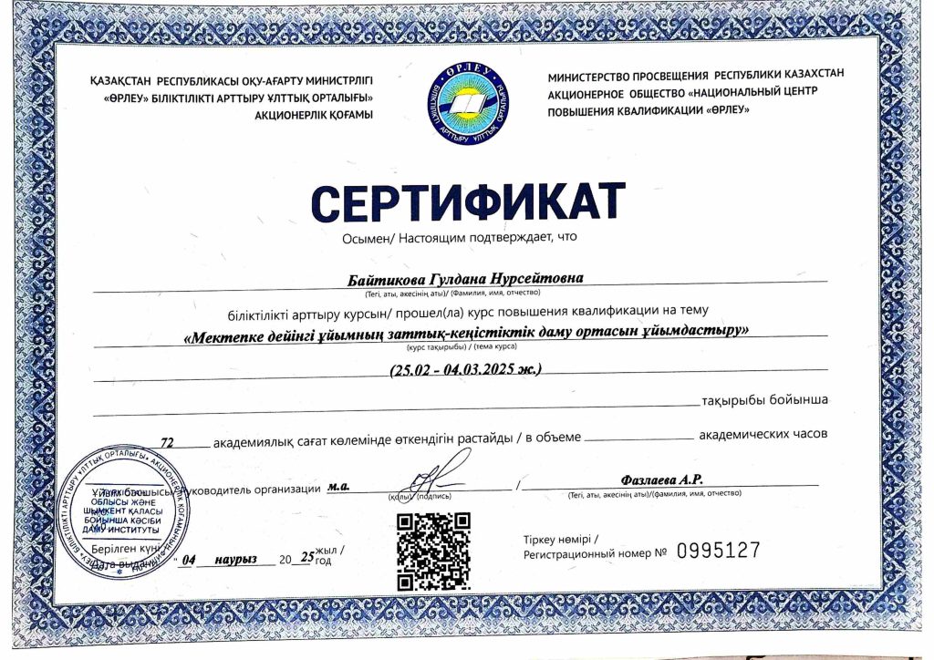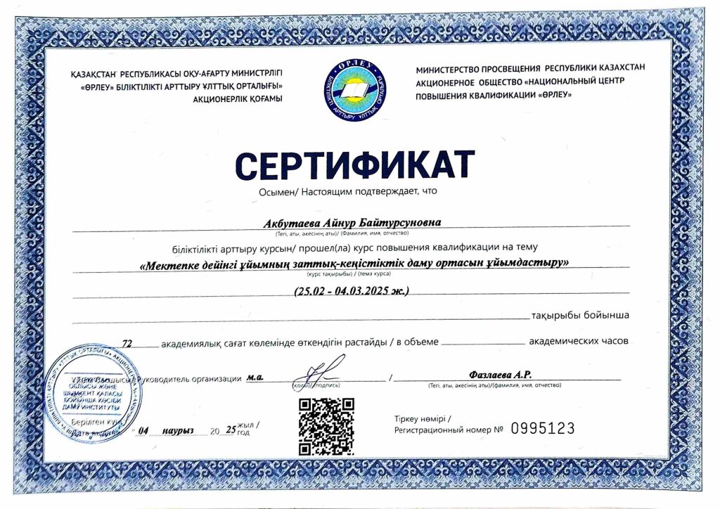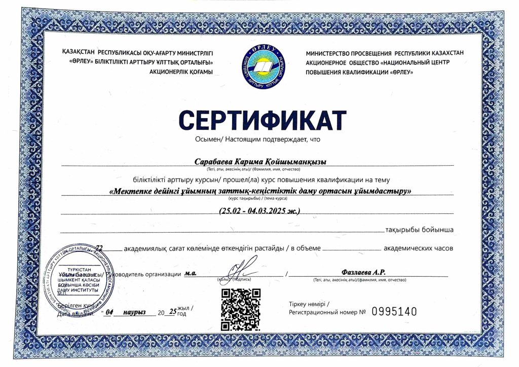 ПЕДАГОГТАРДЫҢ БІЛІКТІЛІК АРТТЫРУЫ