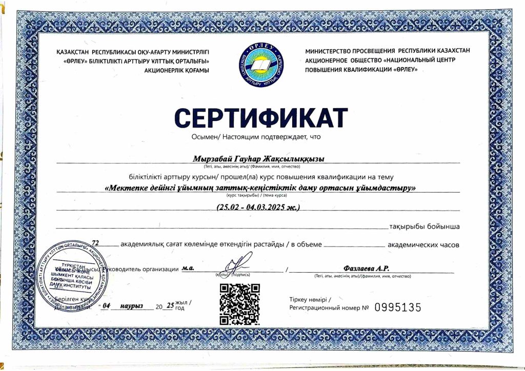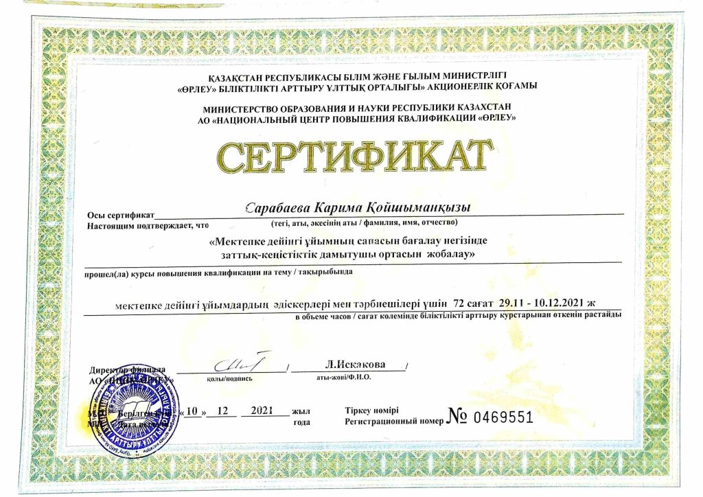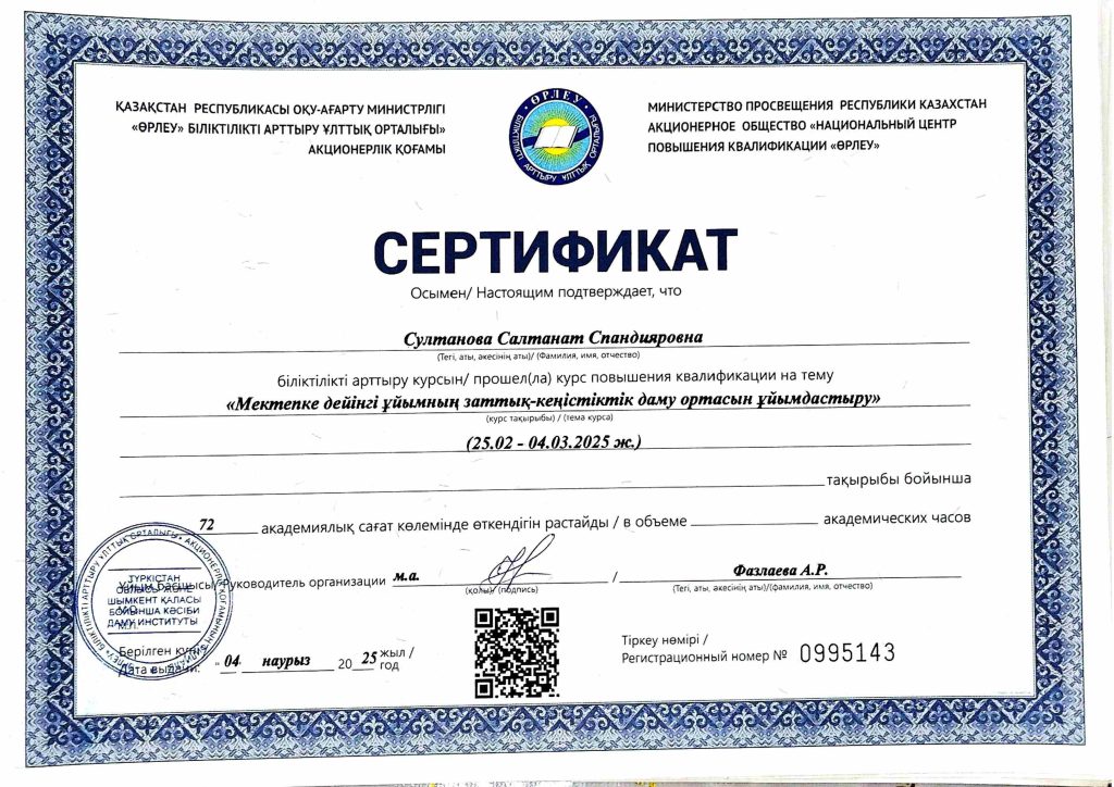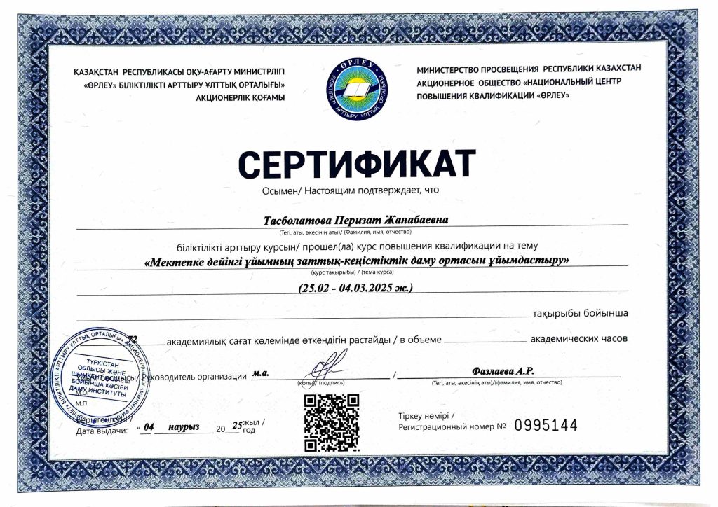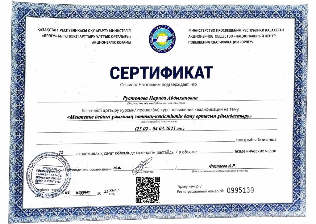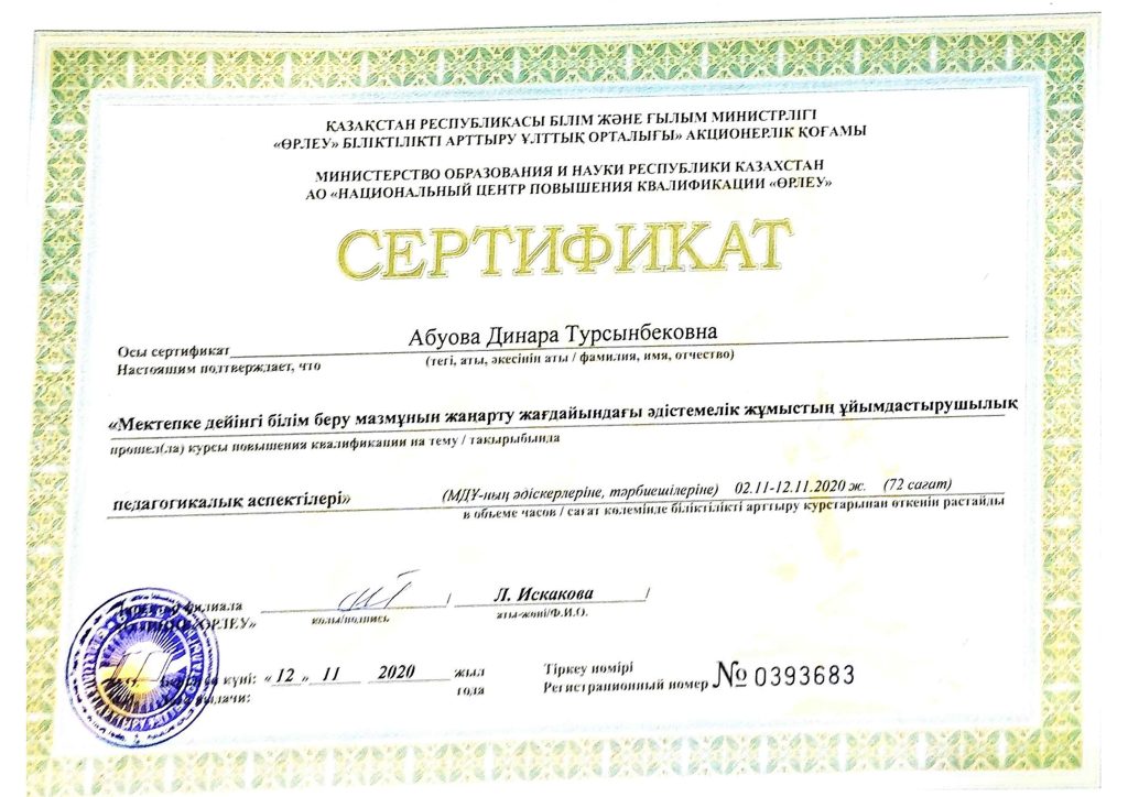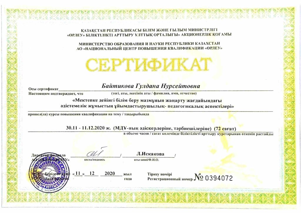 ПЕДАГОГТАРДЫҢ БІЛІКТІЛІК АРТТЫРУЫ