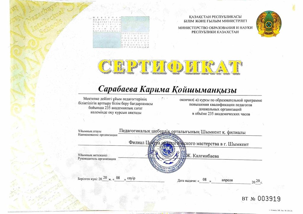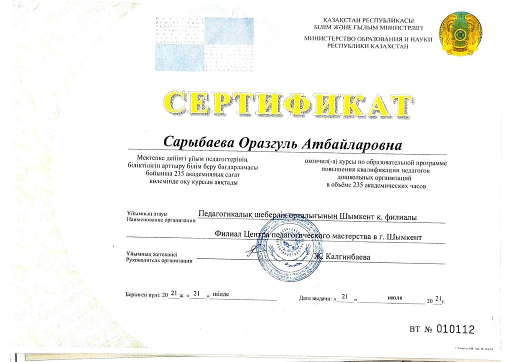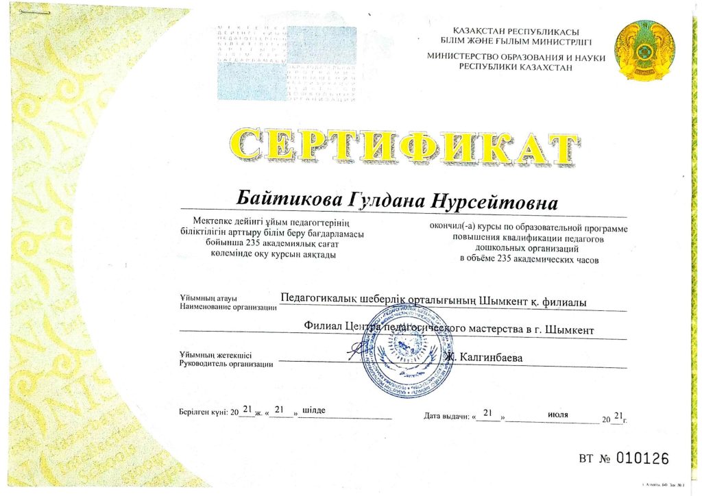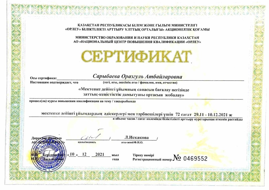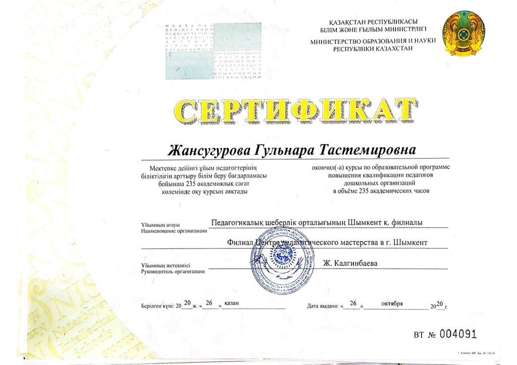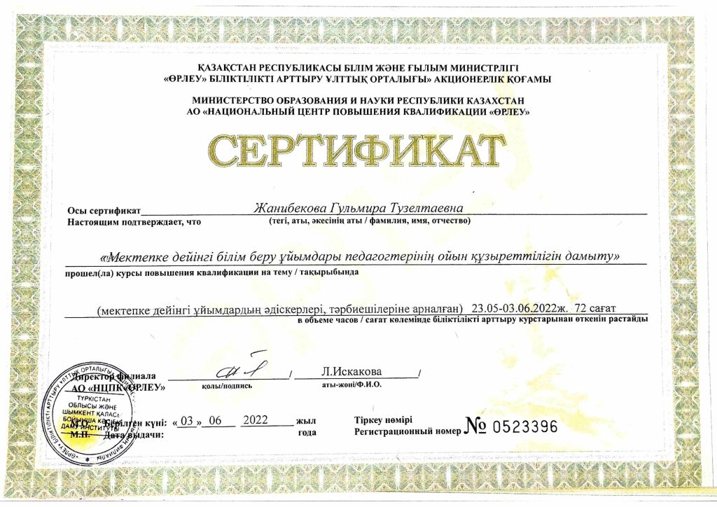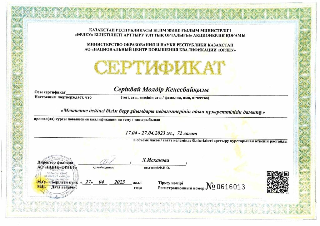 ПЕДАГОГТАРДЫҢ БІЛІКТІЛІК АРТТЫРУЫ