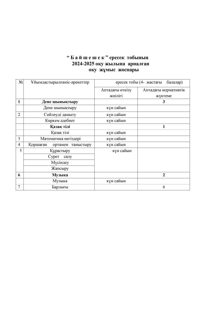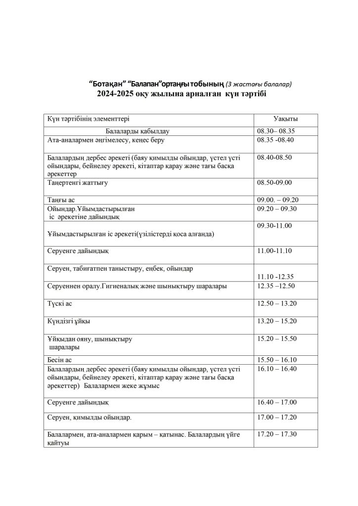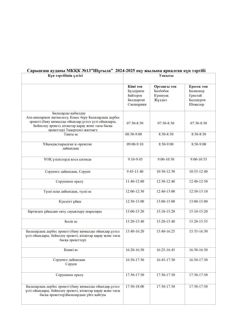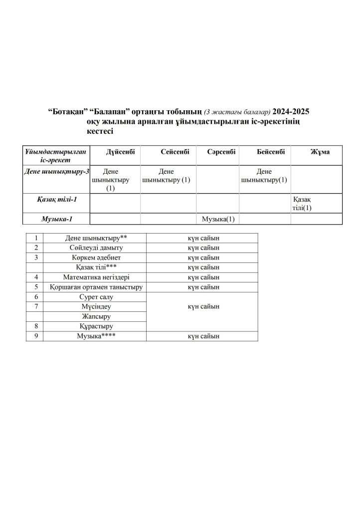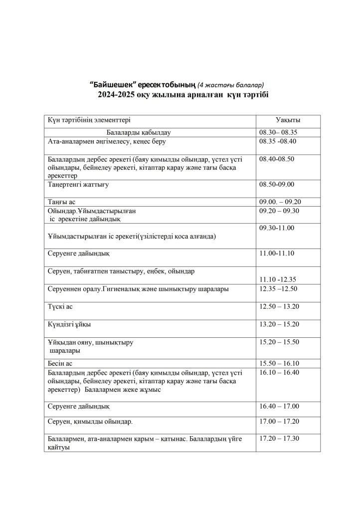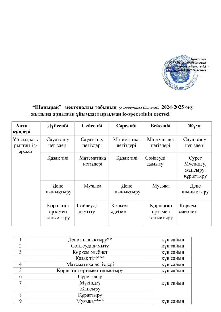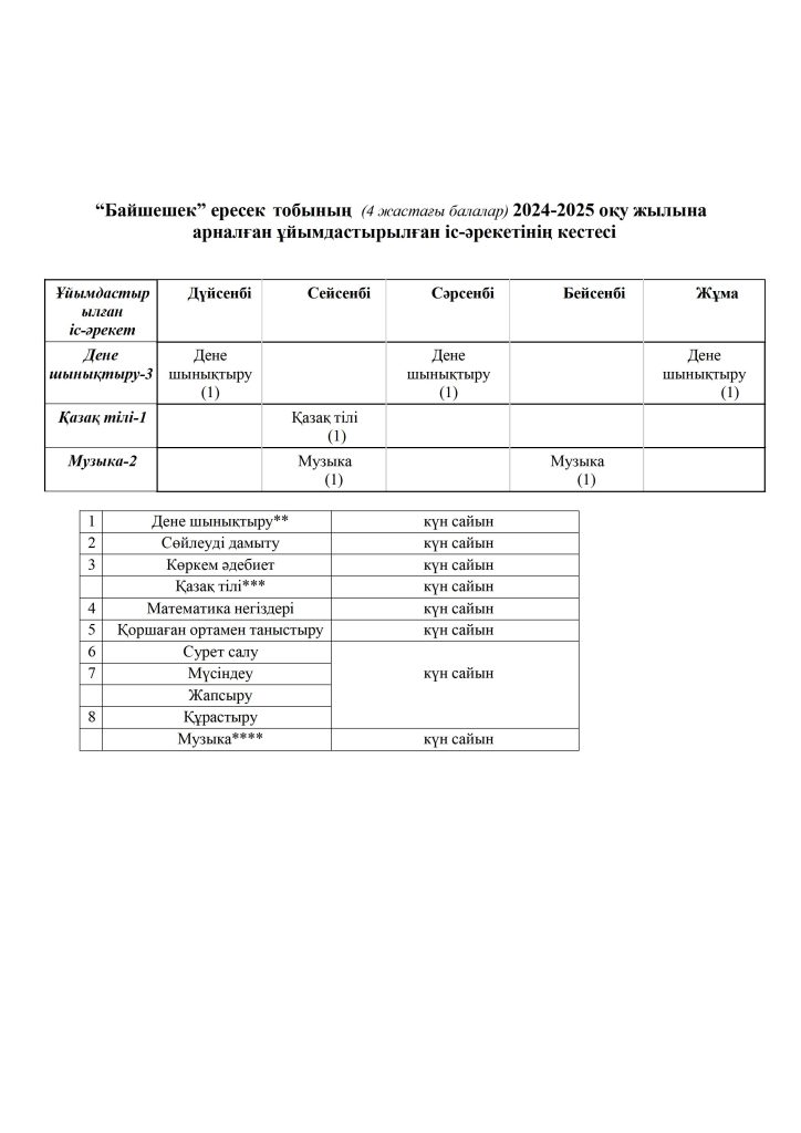 КҮН ТӘРТІБІ, ОҚУ ІС-ӘРЕКЕТ КЕСТЕСІ