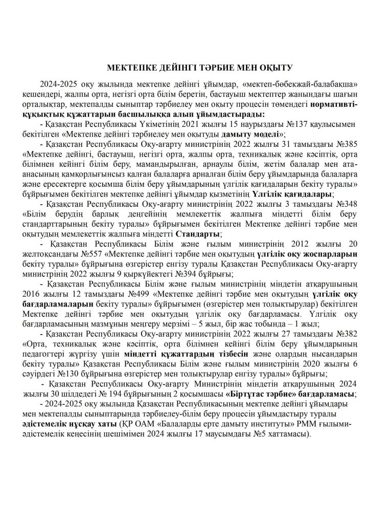 «БІРТҰТАС ТӘРБИЕ» БАҒДАРЛАМАСЫ ІС-ШАРАЛАРЫ